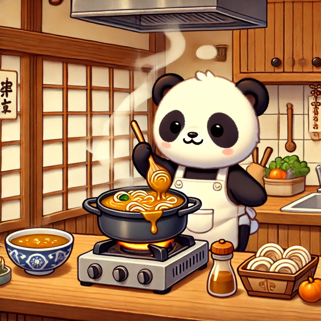 今日は何の日をAI熊猫まる(パンダ)で表現⁉🐼:8月2日は「カレーうどんの日」です🐼:カレーうどんが全国に広まってから100周年を迎えた2010年に「カレーうどん100年革新プロジェクト」が発足し、その一環として8月2日が「カレーうどんの日」として制定されたことにあります。日付は、6月2日の「横浜カレー記念日」と7月2日の「うどんの日」に続く形で、「カレー」+「うどん」で8月2日とされました。🐼